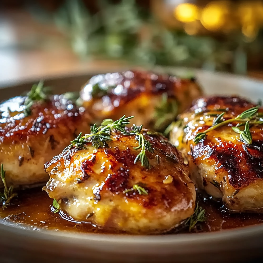 Presentation-wise, let the chicken rest for 3 minutes before serving to maximize juiciness. Serve on a white or wooden platter to make the golden-brown color pop. Garnish with fresh thyme sprigs and a few lemon zest shavings for a rustic, visually appealing presentation.